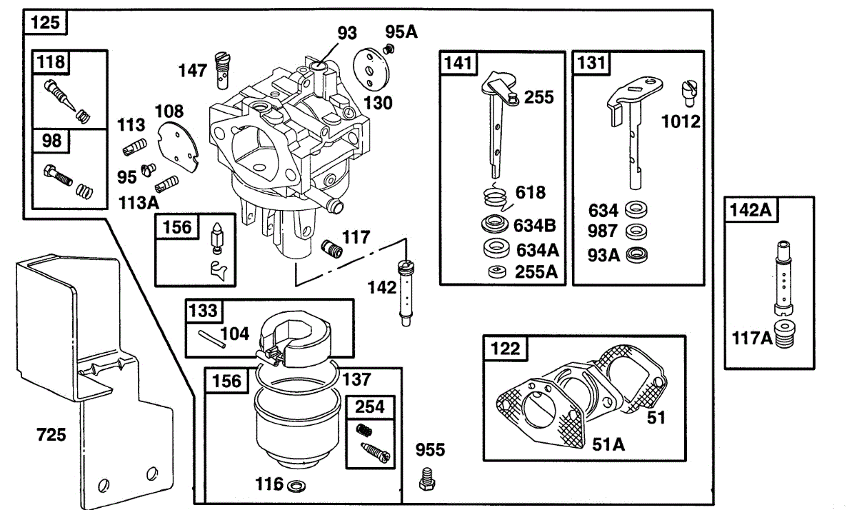 Parts for Briggs & Stratton 161436-0117-01: Carburetor Assy Parts