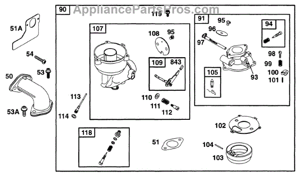 Parts for Briggs & Stratton 170432-6113-02: Carburetor Assy Parts