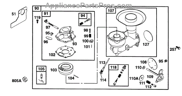 Parts for Briggs & Stratton 221432-0211-01: Carburetor Assy Parts