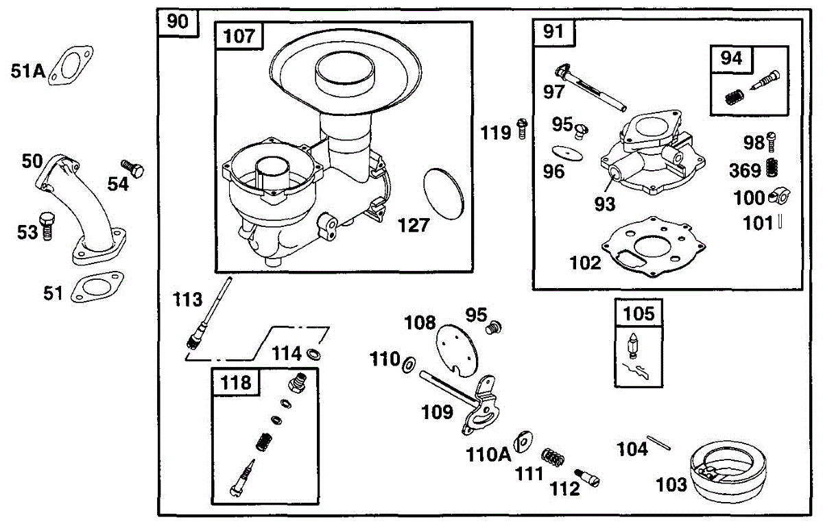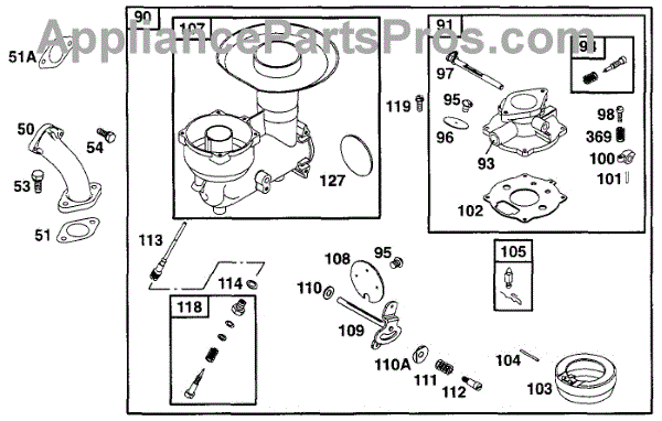 Parts for Briggs & Stratton 222416-0150-02: Carburetor Assy Parts