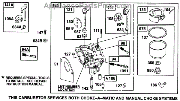 Parts for Briggs & Stratton 285707-0114-01: Carburetor Assy Parts