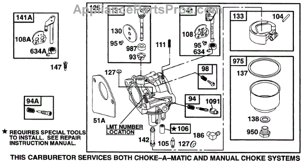 Parts for Briggs & Stratton 28A707-0119-99: Carburetor Assy Parts