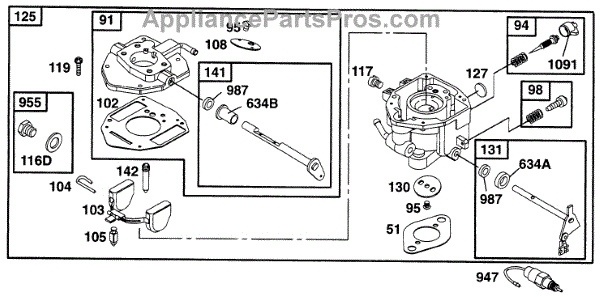 Parts for Briggs & Stratton 290447-1075-A1: Carburetor Assy Parts