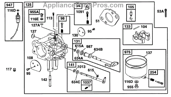 Parts for Briggs & Stratton 290777-0107-01: Carburetor Assy, Parts