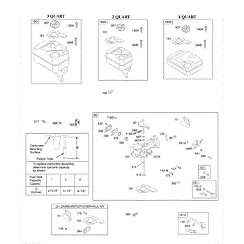 Rebuild your small engine carburetor with this complete overhaul kit. Includes gaskets, seals, and diaphragm to restore proper fuel delivery and performance.