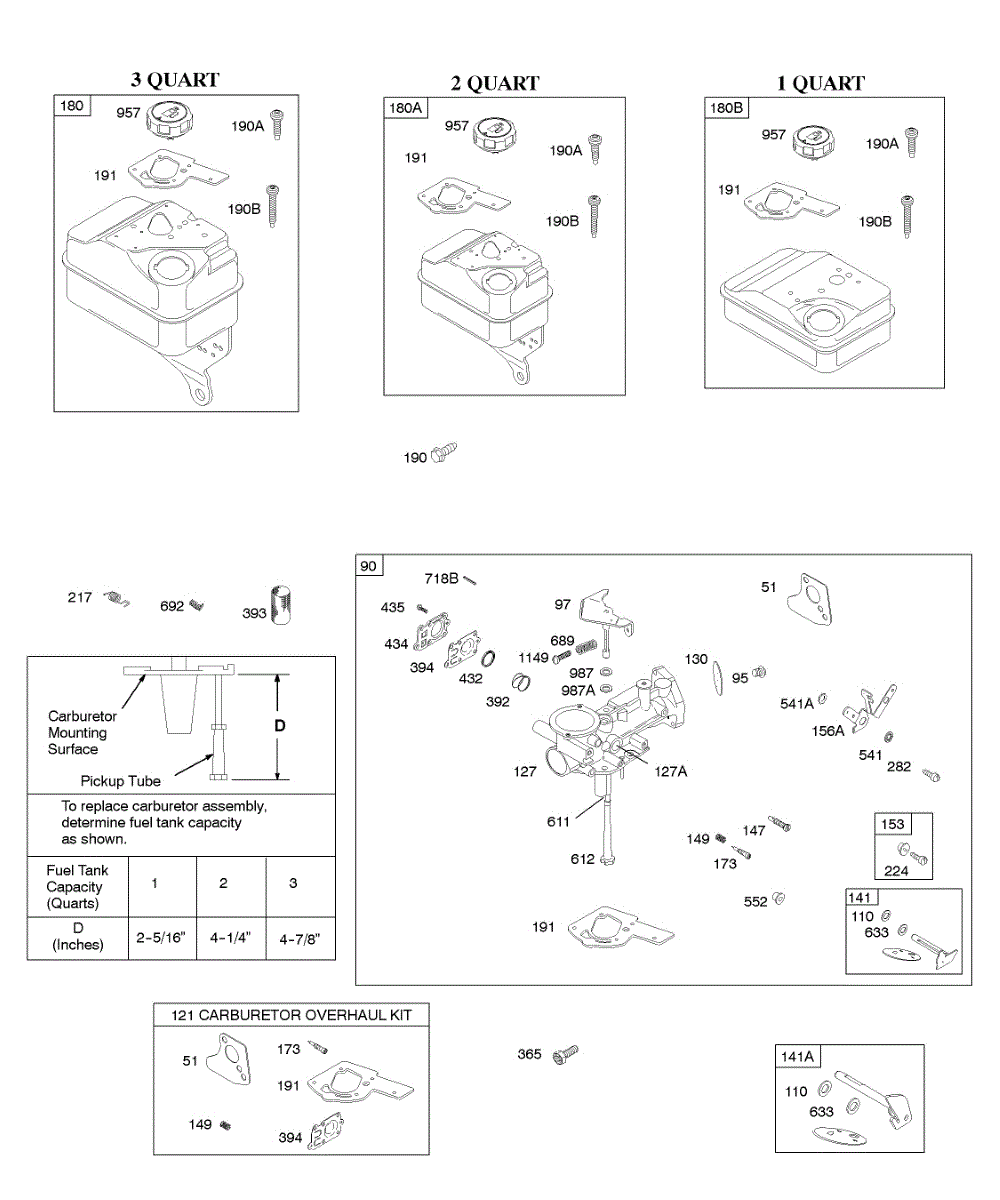 Parts for Briggs & Stratton 092252-1049-E1: Carburetor, Carburetor Overhaul Kit, Fuel Supply Parts