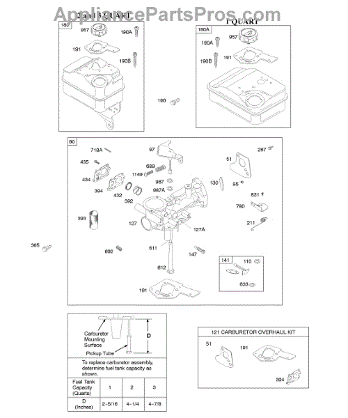 Regulates fuel in the air-fuel mixture for 3-5 HP horizontal crankshaft engines. Replace if engine won't run or diaphragm becomes stiff or damaged.