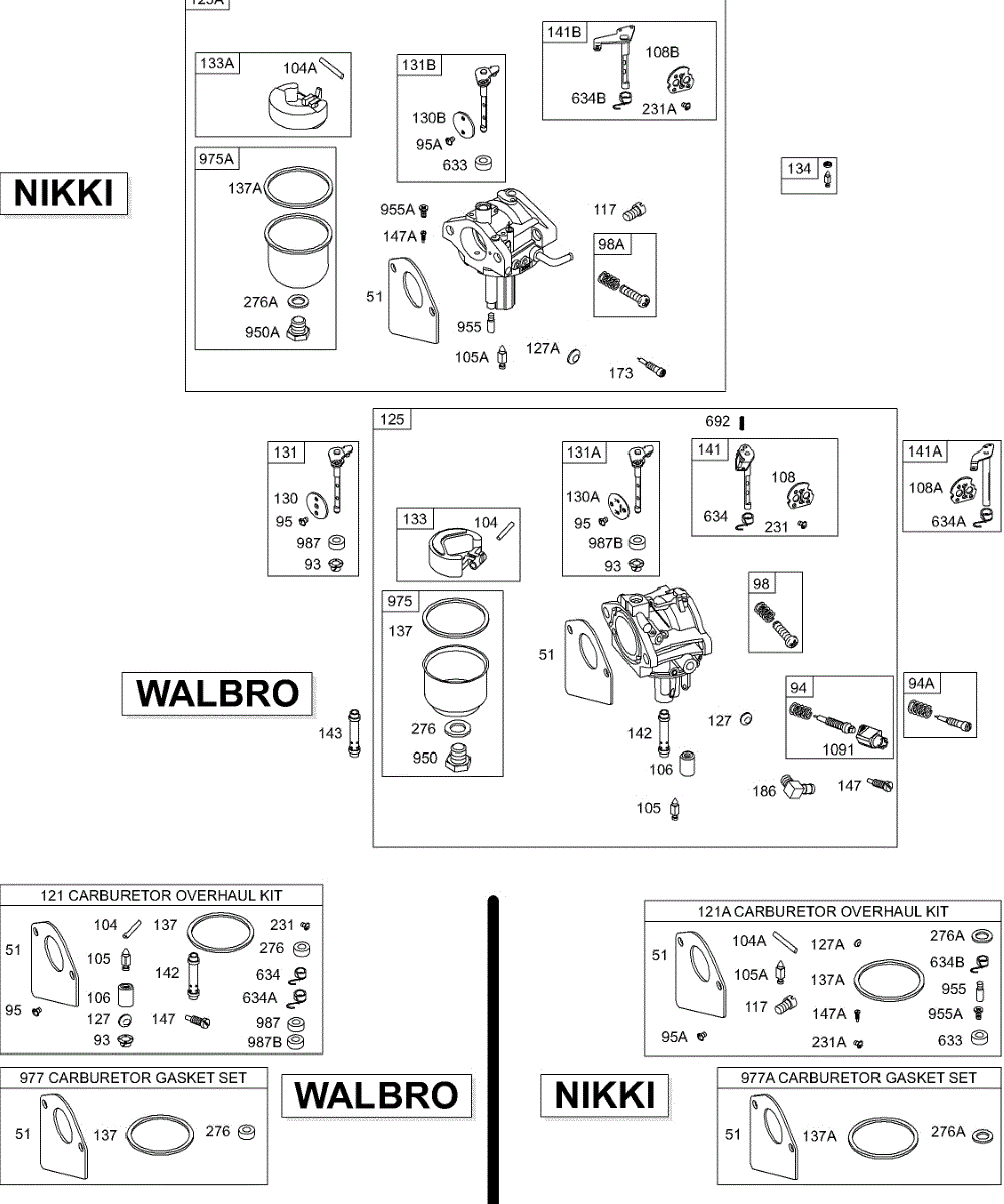 Parts for Briggs & Stratton 284702-1107-E1: Carburetor, Carburetor Overhaul Sets Parts