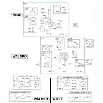 Parts for Briggs & Stratton 286702-1139-E1: Carburetor, Carburetor Overhaul Kit Parts