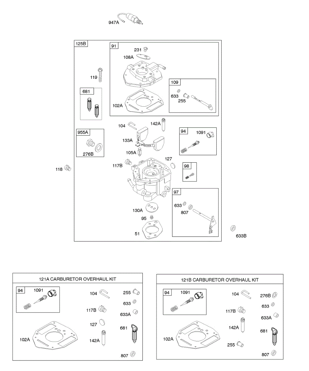 Parts for Briggs & Stratton 294447-1218-E1: Carburetor, Carburetor Overhaul Kit Parts