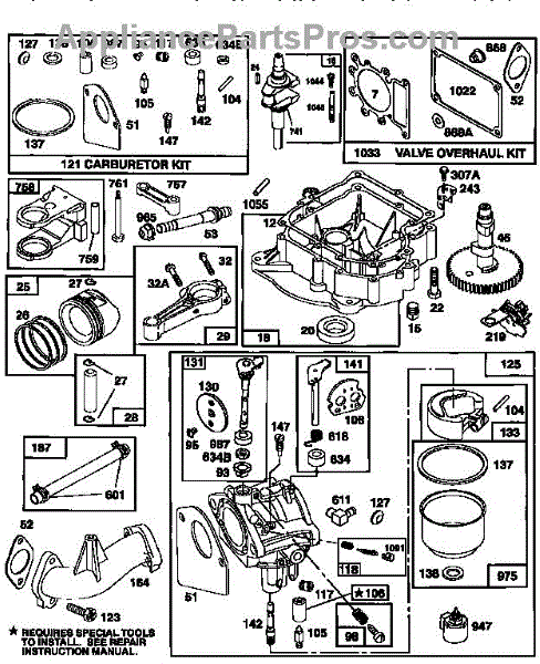 This is a carburetor overhaul kit. This kit contains all of the needed components to rebuild a lawn tractor carburetor. A carburetor overhaul kit is needed to fix problems including worn-out gaskets or diaphragms, gas or air leaks, and sluggish performance.A carburetor mixes fuel and air before delivering it to the engine. The diaphragm helps regulate the amount of fuel that is in this mixture. The gaskets create a seal that keeps unnecessary air out so that the engine works properly. If there is a slight leak, the operator may notice engine roughness when it's at idle. A larger leak will cause the engine to vibrate, misfire, or hesitate under acceleration. Signs that the carburetor diaphragm has gone bad include the engine not starting, cutting off while running, excessive smoke during use, or engine revving sounds produced independent of the operator. All of these signs indicate that a carburetor overhaul kit is needed.This is a genuine OEM part sourced directly from Midwest Engine. It is sold individually. This kit is compatible with lawn tractors manufactured by Midwest Engine, Briggs & Stratton, Toro, and Murray.
