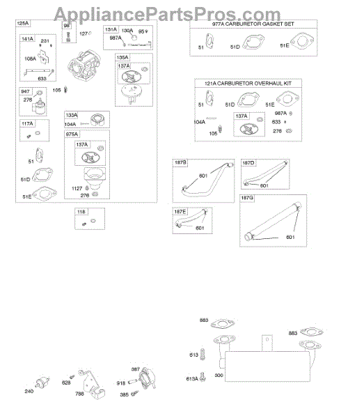 Parts for Briggs & Stratton 406577-0411-E1: Carburetor, Exhaust System, Kit / Gasket Set-Carburetor Parts