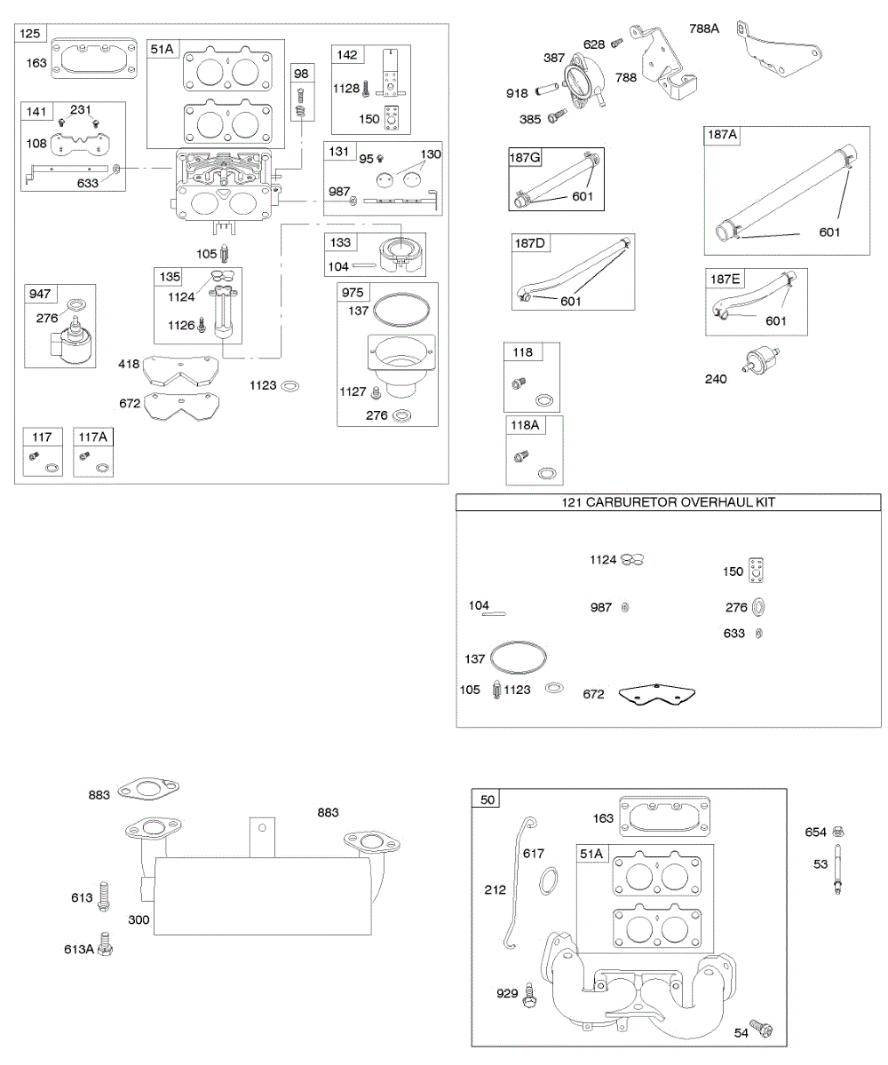 Parts for Briggs & Stratton 44H777-0116-E1: Carburetor, Exhaust System, Kit-Carburetor Overhaul Parts