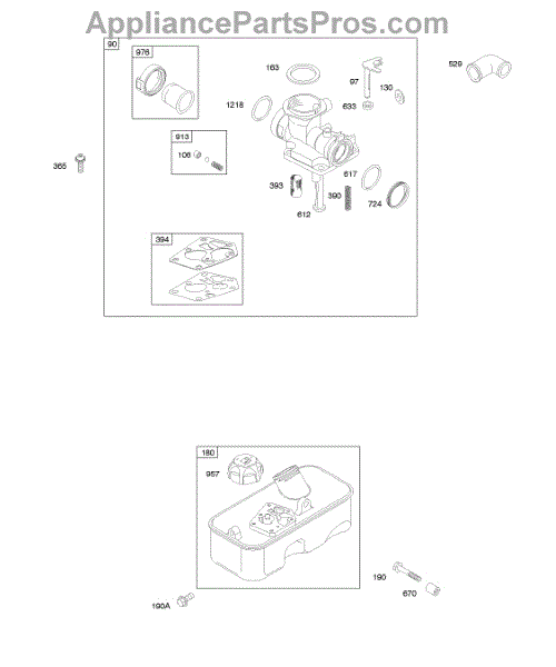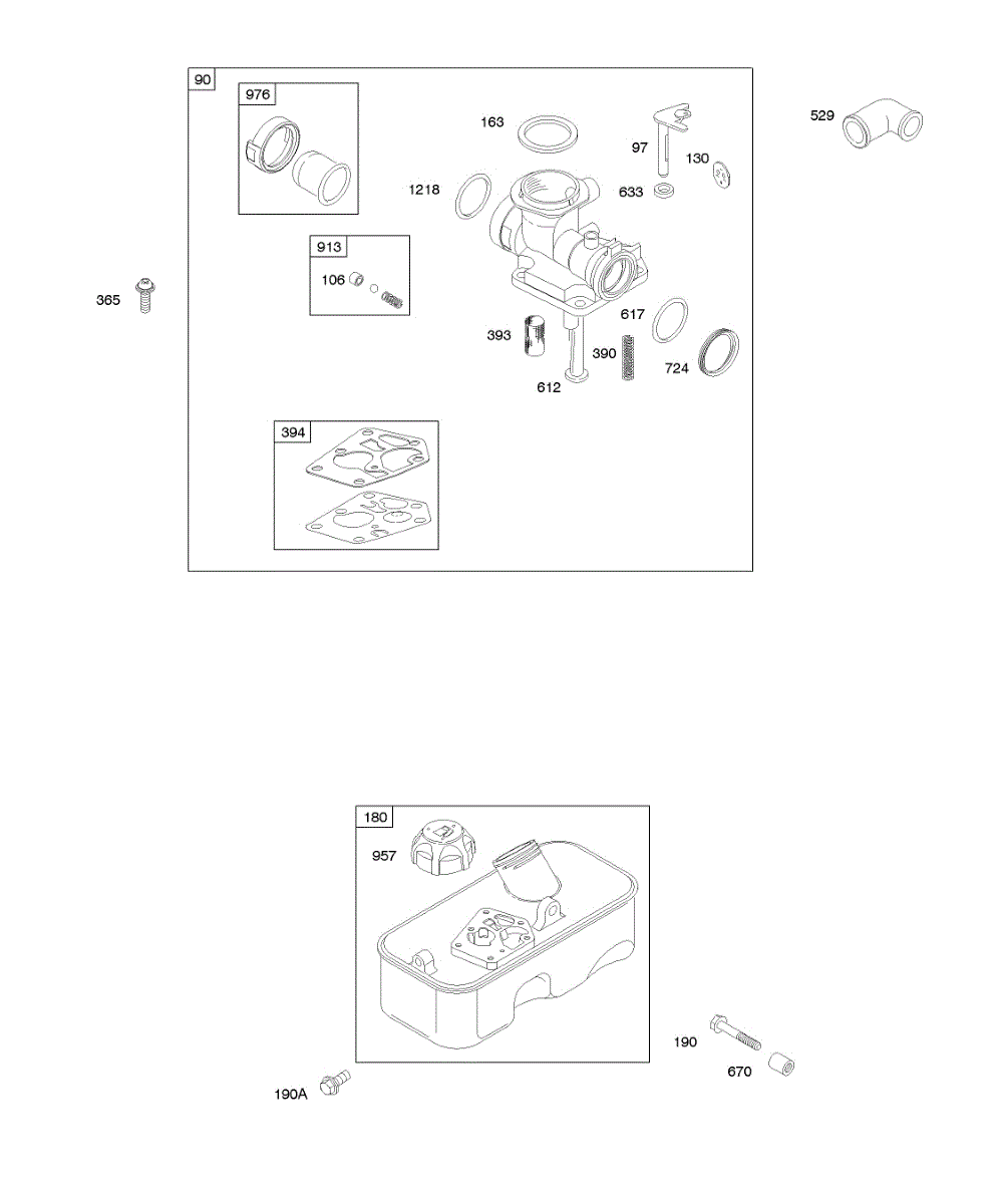 Parts for Briggs & Stratton 09K902-0323-E1: Carburetor, Fuel Supply Parts