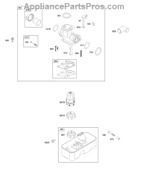 Parts for Briggs & Stratton 09L902-0284-E1: Carburetor, Fuel Supply Parts