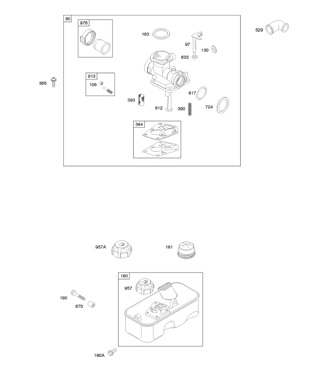 Parts for Briggs & Stratton 10A902-0106-01: Carburetor, Fuel Supply Parts