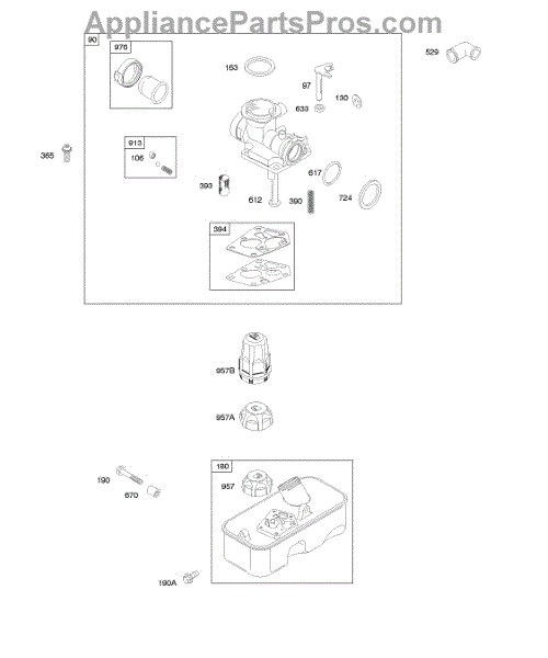 Parts for Briggs & Stratton 10D902-0157-B1: Carburetor, Fuel Supply Parts