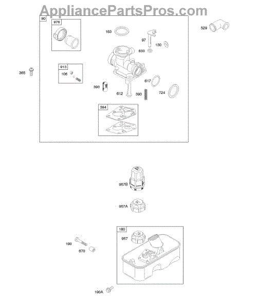 Parts for Briggs & Stratton 10J902-0141-E1: Carburetor, Fuel Supply Parts