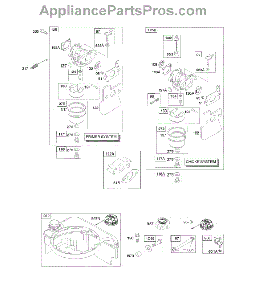 Parts for Briggs & Stratton 111682-0143-E1: Carburetor, Fuel Supply Parts