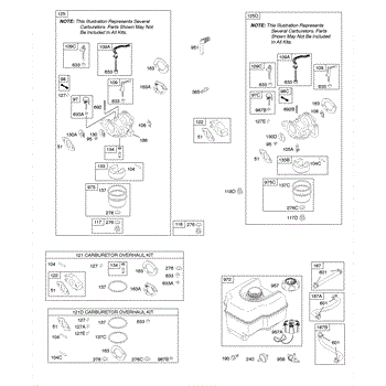 Complete carburetor overhaul kit for lawn and garden engines. Includes gaskets, seals, and components to rebuild a worn or damaged carburetor assembly.