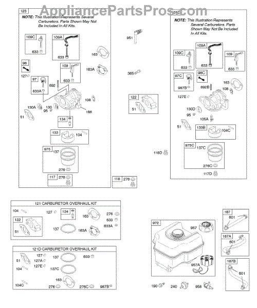 Complete carburetor overhaul kit for lawn and garden engines. Includes gaskets, seals, and components to rebuild a worn or damaged carburetor assembly.