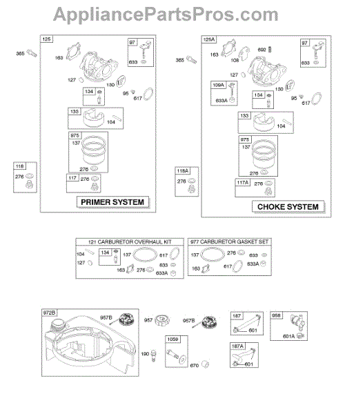 Parts for Briggs & Stratton 120K02-0534-E1: Carburetor, Fuel Supply Parts