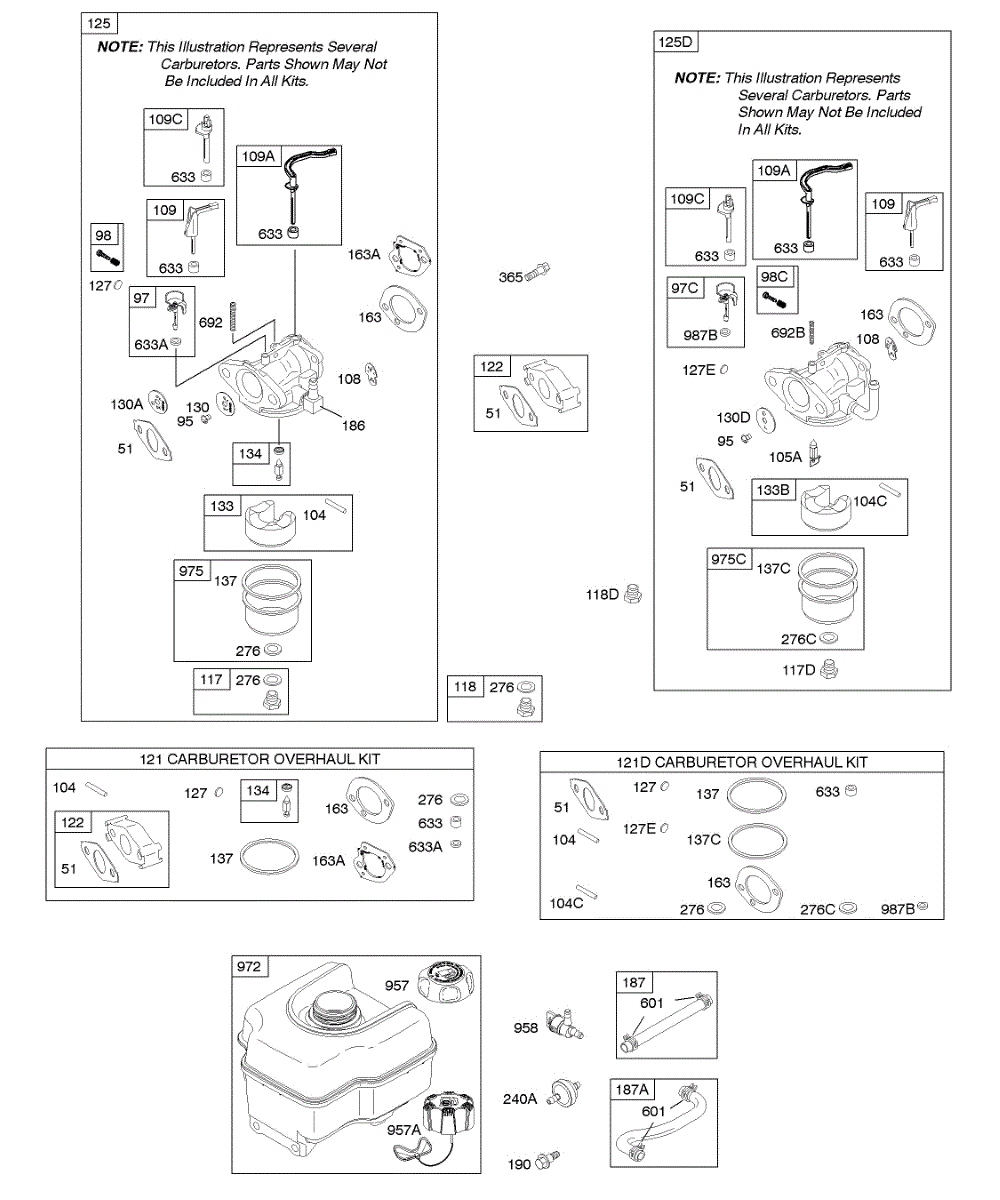 This replacement part is a carburetor overhaul kit. This kit includes multiple parts that are needed to rebuild or repair a damaged carburetor.Be sure to diagnose the issue before purchasing this kit to ensure that the needed parts are included. A damaged carburetor may cause hard starting or black smoke exhaust during use. Wear work gloves when working with the carburetor. The engine should be powered down and cooled off before starting this job.This is a genuine OEM replacement part manufactured by Midwest Engine. This part is sold individually.