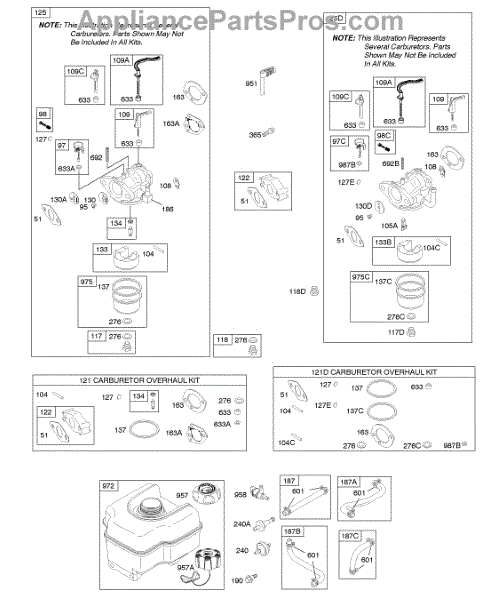 Complete carburetor overhaul kit for lawn and garden engines. Includes gaskets, seals, and components to rebuild a worn or damaged carburetor assembly.
