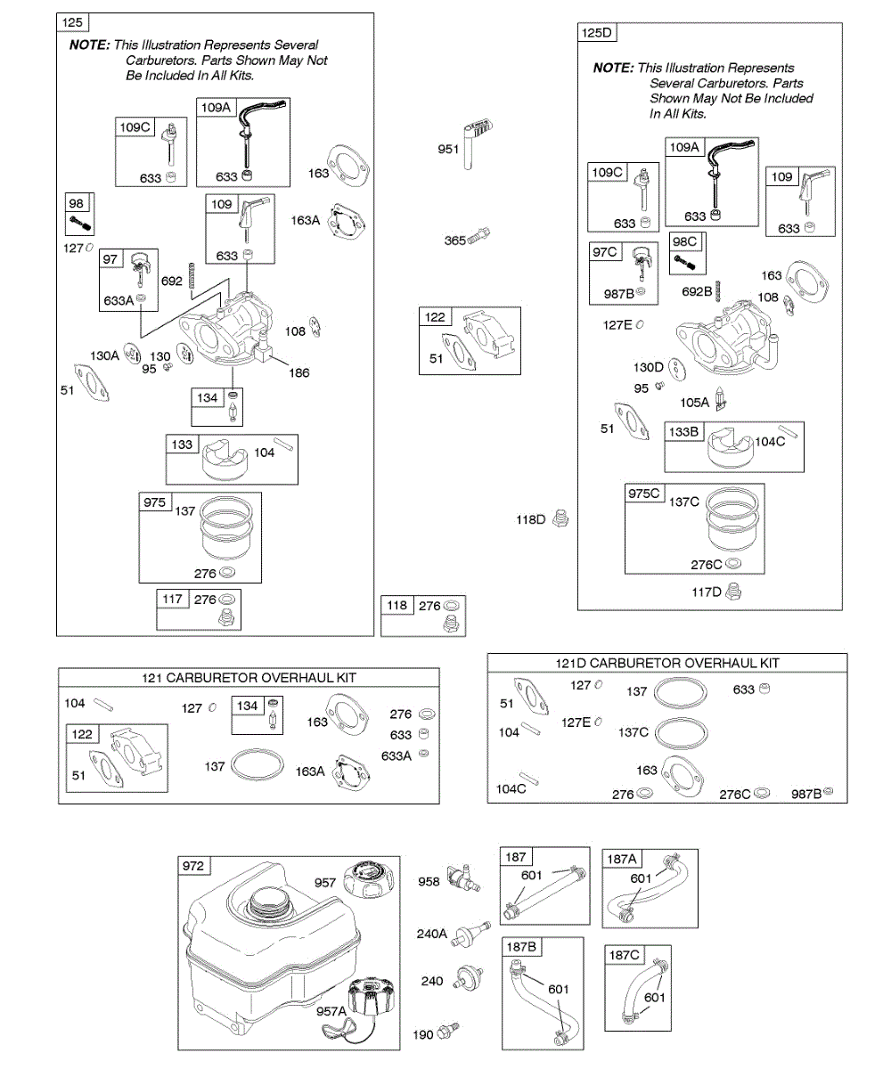 Complete carburetor overhaul kit for lawn and garden engines. Includes gaskets, seals, and components to rebuild a worn or damaged carburetor assembly.