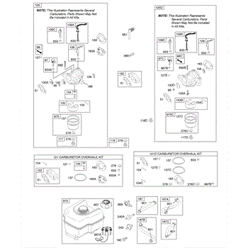 Complete carburetor overhaul kit for lawn and garden engines. Includes gaskets, seals, and components to rebuild a worn or damaged carburetor assembly.
