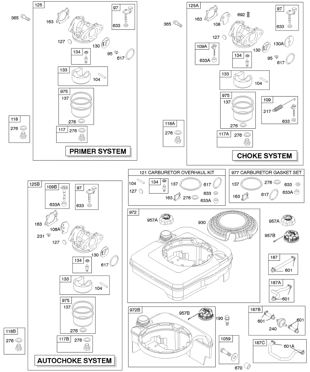 Parts for Briggs & Stratton 122K07-0178-E1: Carburetor, Fuel Supply Parts