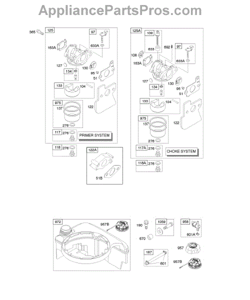 Parts for Briggs & Stratton 124602-0110-E1: Carburetor, Fuel Supply Parts