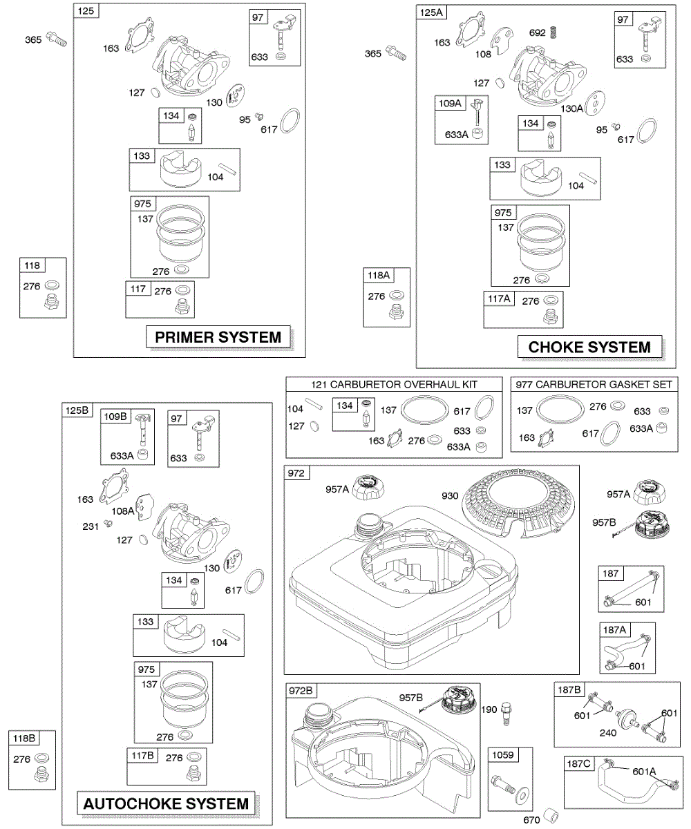Parts for Briggs & Stratton 125K02-0683-E1: Carburetor, Fuel Supply Parts