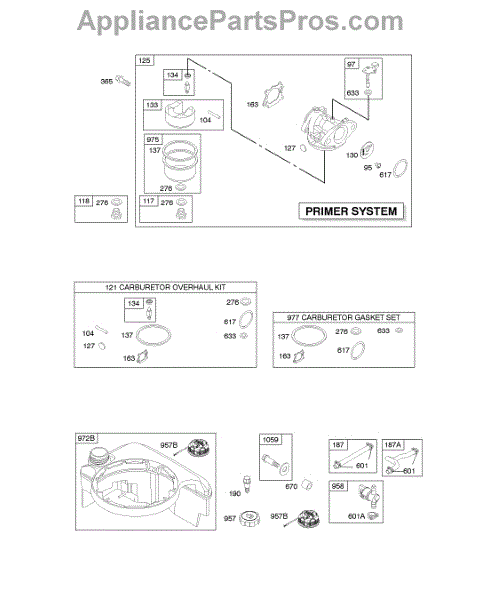 This is a carburetor overhaul kit for 3.5 to 4 HP Max Series Quantum and 5 HP Industrial Plus Engines. It is secured to the side or top of a lawnmower engine, depending on the manufacturer. The carburetor is crucial to the overall performance of an engine because it is responsible for mixing the right amounts of air and fuel. The fuel from the fuel tank flows through a hose into the carburetor, which allows it to drip into a bowl. The carburetor can become dirty or clogged over time for a variety of reasons. When this happens, it is often a good idea to take it apart and replace the components inside. There are other telltale signs that the carburetor needs an overhaul or repair. These include an engine that won't start, an engine that's running lean, an engine that's running rich, and one that's flooded. This high-quality carburetor overhaul kit comes with everything needed to repair or rebuild a carburetor, including gaskets, needle, float, seals, and an instruction manual. Aside from lawnmowers, it works with specific models of leaf blower/vacuums, generators, pressure washers, wood chippers, and small engines from Briggs & Stratton, Craftsman, Cub Cadet, Lawn-Boy, MTD, Murray, Simplicity, and Toro. It is an OEM product sourced directly from the manufacturer and is sold individually. Please refer to the diagram of the specific model for the correct location and application of the components.