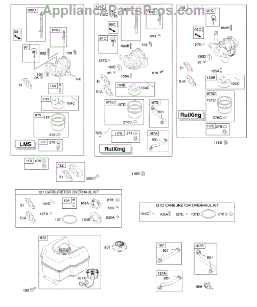 This is a genuine carburetor overhaul kit that is manufactured for use on select small engines that are used in lawn and garden equipment. The carburetor is responsible for providing the air and fuel mixture to the engine to help keep it running properly. This assembly is full of gaskets and diaphragms, along with other small parts, that help move the fuel and air, mix them, and then send them into the engine. Over time and with regular use, these parts can become worn, corroded, or lose their seal. This can result in poor performance or stop the engine from running entirely. A replacement with a genuine OEM carburetor overhaul kit is preferred to changing out single parts. Rebuilding the carburetor can bring years of life back to an engine. This OEM kit is manufactured by Briggs & Stratton and is made to exact standards to provide an identical replacement. It can be used in their small engines that are found in lawn and garden machines like blowers, tractors, snowblowers, and lawn mowers. There are more than 150 models that can use this replacement kit. The kit includes all of the gaskets, diaphragms, and other parts to rebuild the carburetor.