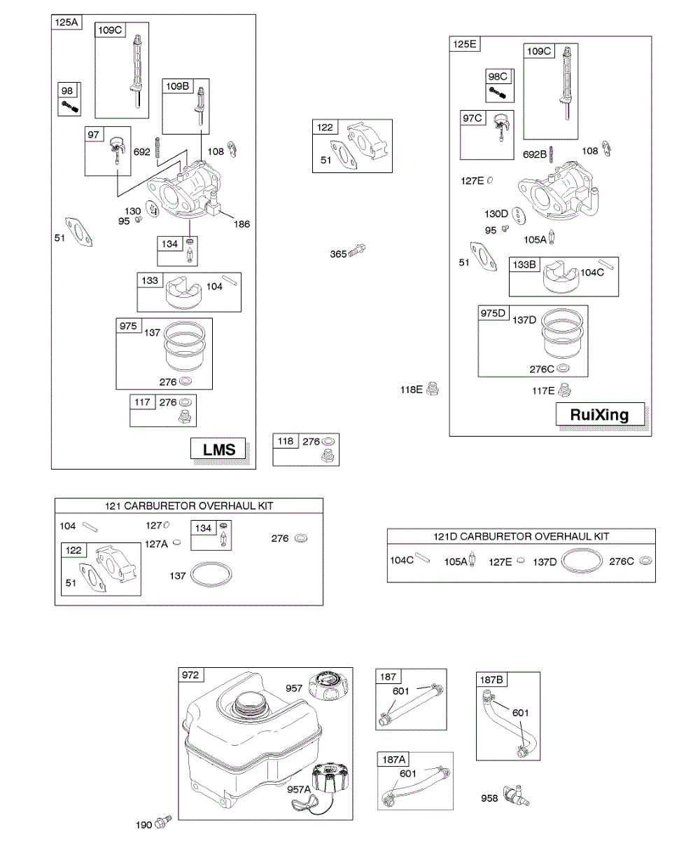 This replacement part is a carburetor overhaul kit. This kit includes multiple parts that are needed to rebuild or repair a damaged carburetor.Be sure to diagnose the issue before purchasing this kit to ensure that the needed parts are included. A damaged carburetor may cause hard starting or black smoke exhaust during use. Wear work gloves when working with the carburetor. The engine should be powered down and cooled off before starting this job.This is a genuine OEM replacement part manufactured by Midwest Engine. This part is sold individually.