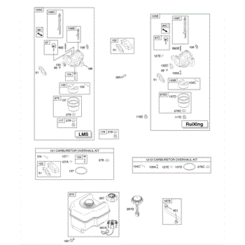 This is a genuine carburetor overhaul kit that is manufactured for use on select small engines that are used in lawn and garden equipment. The carburetor is responsible for providing the air and fuel mixture to the engine to help keep it running properly. This assembly is full of gaskets and diaphragms, along with other small parts, that help move the fuel and air, mix them, and then send them into the engine. Over time and with regular use, these parts can become worn, corroded, or lose their seal. This can result in poor performance or stop the engine from running entirely. A replacement with a genuine OEM carburetor overhaul kit is preferred to changing out single parts. Rebuilding the carburetor can bring years of life back to an engine. This OEM kit is manufactured by Briggs & Stratton and is made to exact standards to provide an identical replacement. It can be used in their small engines that are found in lawn and garden machines like blowers, tractors, snowblowers, and lawn mowers. There are more than 150 models that can use this replacement kit. The kit includes all of the gaskets, diaphragms, and other parts to rebuild the carburetor.