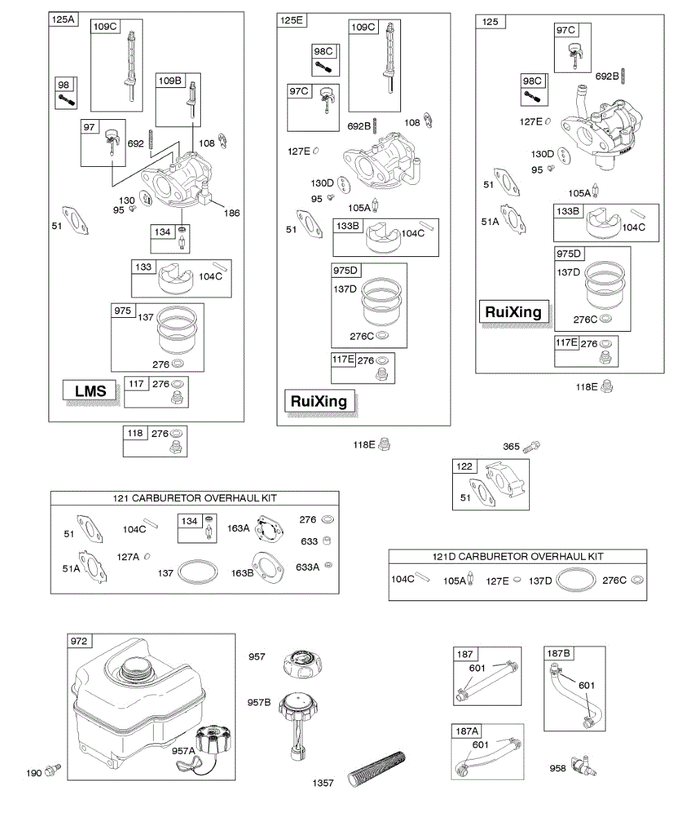 Parts for Briggs & Stratton 12D106-0155-E8: Carburetor, Fuel Supply Parts