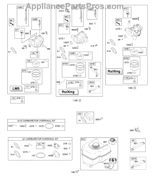 Parts for Briggs & Stratton 12D313-0019-E1: Carburetor, Fuel Supply Parts