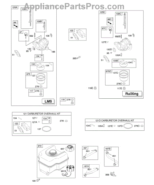 This replacement part is a carburetor overhaul kit. This kit includes multiple parts that are needed to rebuild or repair a damaged carburetor.Be sure to diagnose the issue before purchasing this kit to ensure that the needed parts are included. A damaged carburetor may cause hard starting or black smoke exhaust during use. Wear work gloves when working with the carburetor. The engine should be powered down and cooled off before starting this job.This is a genuine OEM replacement part manufactured by Midwest Engine. This part is sold individually.