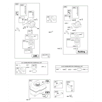 This is a genuine carburetor overhaul kit that is manufactured for use on select small engines that are used in lawn and garden equipment. The carburetor is responsible for providing the air and fuel mixture to the engine to help keep it running properly. This assembly is full of gaskets and diaphragms, along with other small parts, that help move the fuel and air, mix them, and then send them into the engine. Over time and with regular use, these parts can become worn, corroded, or lose their seal. This can result in poor performance or stop the engine from running entirely. A replacement with a genuine OEM carburetor overhaul kit is preferred to changing out single parts. Rebuilding the carburetor can bring years of life back to an engine. This OEM kit is manufactured by Briggs & Stratton and is made to exact standards to provide an identical replacement. It can be used in their small engines that are found in lawn and garden machines like blowers, tractors, snowblowers, and lawn mowers. There are more than 150 models that can use this replacement kit. The kit includes all of the gaskets, diaphragms, and other parts to rebuild the carburetor.