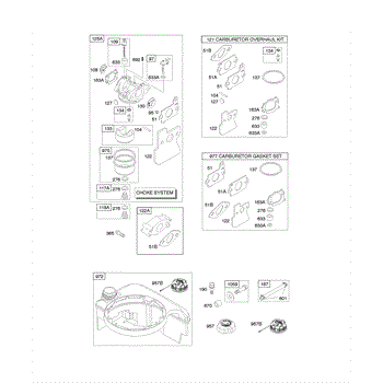 This is a carburetor overhaul kit that is compatible with over 150 different small gasoline-powered tools. This equipment includes leaf blowers, power vacuums, lawn mowers, and other small engine tools. Each of these engines employs a carburetor where the air and fuel come together to be mixed before flowing into the combustion chamber to be ignited. Since the carburetor is where the raw products of air and gasoline come together, is it especially susceptible to air and fuel impurities. Particulate matter that escapes air filtration and contaminants in the gasoline eat away the gaskets that seal the entrances and exits to the carburetor. Eventually, users may notice that the power tool starts up but has little power and quickly dies. This is often a sign of a fouled carburetor. This kit, which is an OEM certified genuine replacement part that perfectly replicates the original, has all 16 pieces necessary to rebuild the carburetor so it works exactly as it did when new. Because a carburetor overhaul is one of the more detailed repairs a user may perform, it is a good idea to refer to the owner's manual for a diagram showing the proper order of components. This kit is compatible with Toro and Briggs & Stratton.