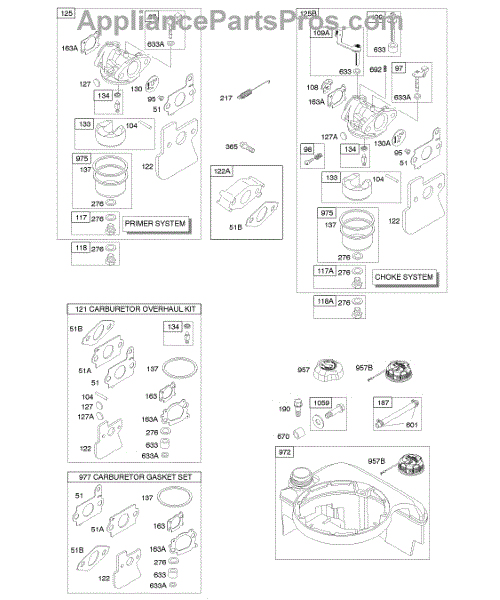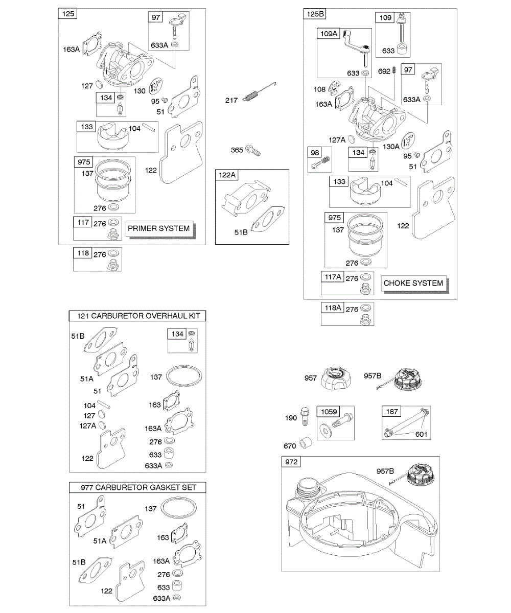 Parts for Briggs & Stratton 12K687-0113-E1: Carburetor, Fuel Supply Parts