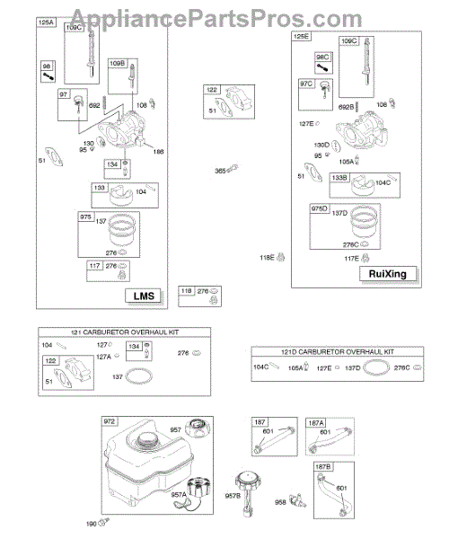 This replacement part is a carburetor overhaul kit. This kit includes multiple parts that are needed to rebuild or repair a damaged carburetor.Be sure to diagnose the issue before purchasing this kit to ensure that the needed parts are included. A damaged carburetor may cause hard starting or black smoke exhaust during use. Wear work gloves when working with the carburetor. The engine should be powered down and cooled off before starting this job.This is a genuine OEM replacement part manufactured by Midwest Engine. This part is sold individually.
