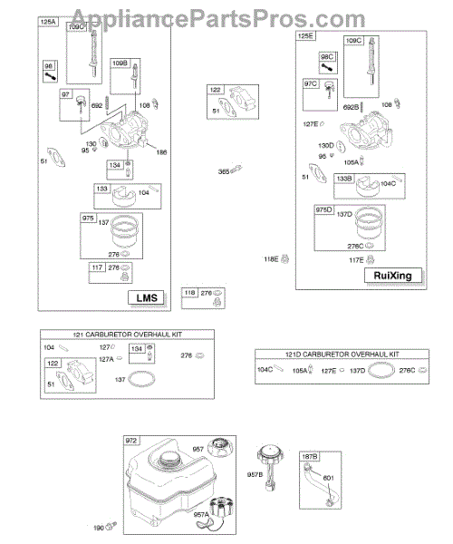This replacement part is a carburetor overhaul kit. This kit includes multiple parts that are needed to rebuild or repair a damaged carburetor.Be sure to diagnose the issue before purchasing this kit to ensure that the needed parts are included. A damaged carburetor may cause hard starting or black smoke exhaust during use. Wear work gloves when working with the carburetor. The engine should be powered down and cooled off before starting this job.This is a genuine OEM replacement part manufactured by Midwest Engine. This part is sold individually.