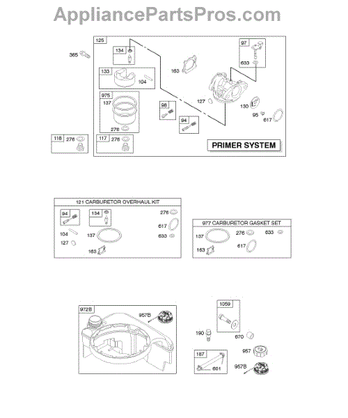 This is a carburetor overhaul kit for 3.5 to 4 HP Max Series Quantum and 5 HP Industrial Plus Engines. It is secured to the side or top of a lawnmower engine, depending on the manufacturer. The carburetor is crucial to the overall performance of an engine because it is responsible for mixing the right amounts of air and fuel. The fuel from the fuel tank flows through a hose into the carburetor, which allows it to drip into a bowl. The carburetor can become dirty or clogged over time for a variety of reasons. When this happens, it is often a good idea to take it apart and replace the components inside. There are other telltale signs that the carburetor needs an overhaul or repair. These include an engine that won't start, an engine that's running lean, an engine that's running rich, and one that's flooded. This high-quality carburetor overhaul kit comes with everything needed to repair or rebuild a carburetor, including gaskets, needle, float, seals, and an instruction manual. Aside from lawnmowers, it works with specific models of leaf blower/vacuums, generators, pressure washers, wood chippers, and small engines from Briggs & Stratton, Craftsman, Cub Cadet, Lawn-Boy, MTD, Murray, Simplicity, and Toro. It is an OEM product sourced directly from the manufacturer and is sold individually. Please refer to the diagram of the specific model for the correct location and application of the components.