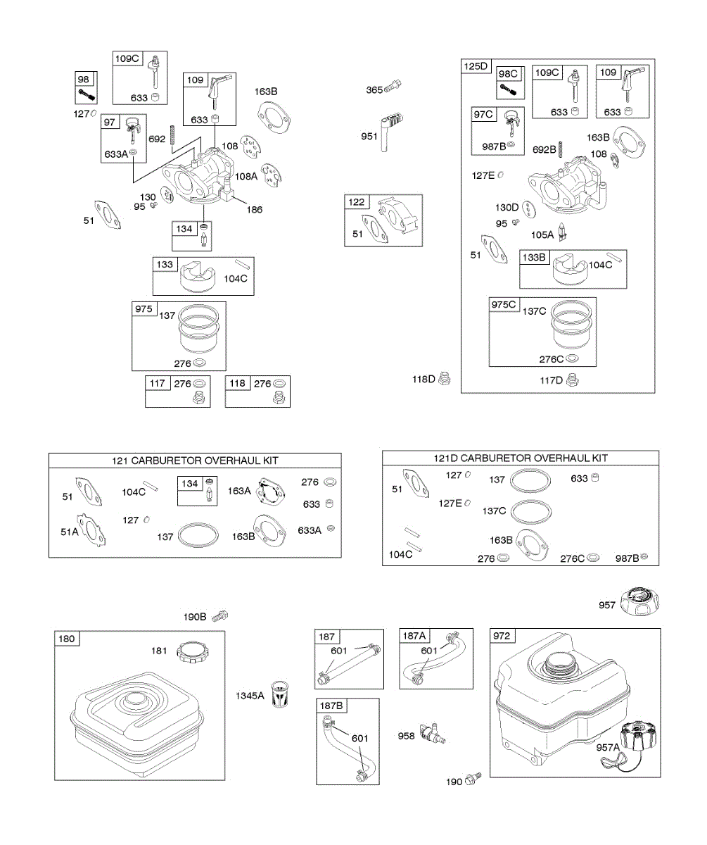 Parts for Briggs & Stratton 150212-0122-E9: Carburetor, Fuel Supply Parts