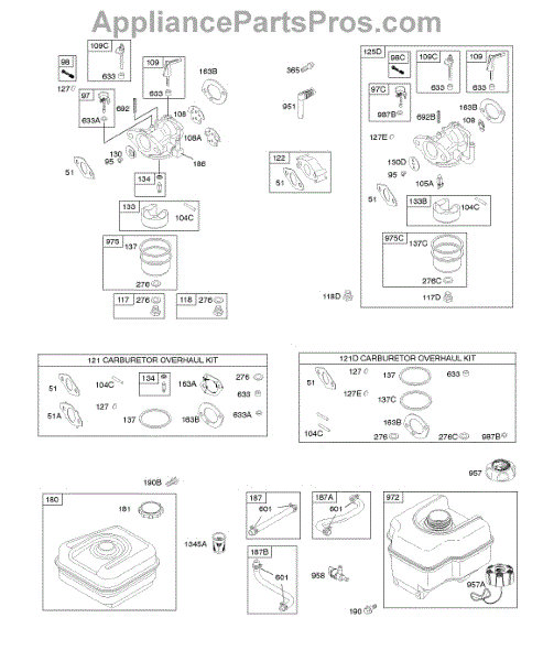 This replacement part is a carburetor overhaul kit. This kit includes multiple parts that are needed to rebuild or repair a damaged carburetor.Be sure to diagnose the issue before purchasing this kit to ensure that the needed parts are included. A damaged carburetor may cause hard starting or black smoke exhaust during use. Wear work gloves when working with the carburetor. The engine should be powered down and cooled off before starting this job.This is a genuine OEM replacement part manufactured by Midwest Engine. This part is sold individually.