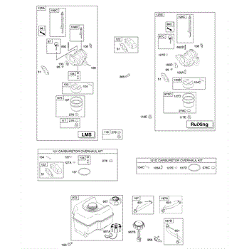 This is a genuine carburetor overhaul kit that is manufactured for use on select small engines that are used in lawn and garden equipment. The carburetor is responsible for providing the air and fuel mixture to the engine to help keep it running properly. This assembly is full of gaskets and diaphragms, along with other small parts, that help move the fuel and air, mix them, and then send them into the engine. Over time and with regular use, these parts can become worn, corroded, or lose their seal. This can result in poor performance or stop the engine from running entirely. A replacement with a genuine OEM carburetor overhaul kit is preferred to changing out single parts. Rebuilding the carburetor can bring years of life back to an engine. This OEM kit is manufactured by Briggs & Stratton and is made to exact standards to provide an identical replacement. It can be used in their small engines that are found in lawn and garden machines like blowers, tractors, snowblowers, and lawn mowers. There are more than 150 models that can use this replacement kit. The kit includes all of the gaskets, diaphragms, and other parts to rebuild the carburetor.