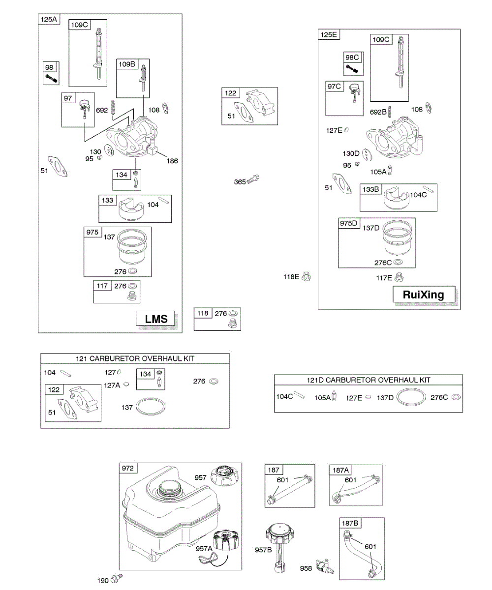 Parts for Briggs & Stratton 15A114-0121-E8: Carburetor, Fuel Supply Parts